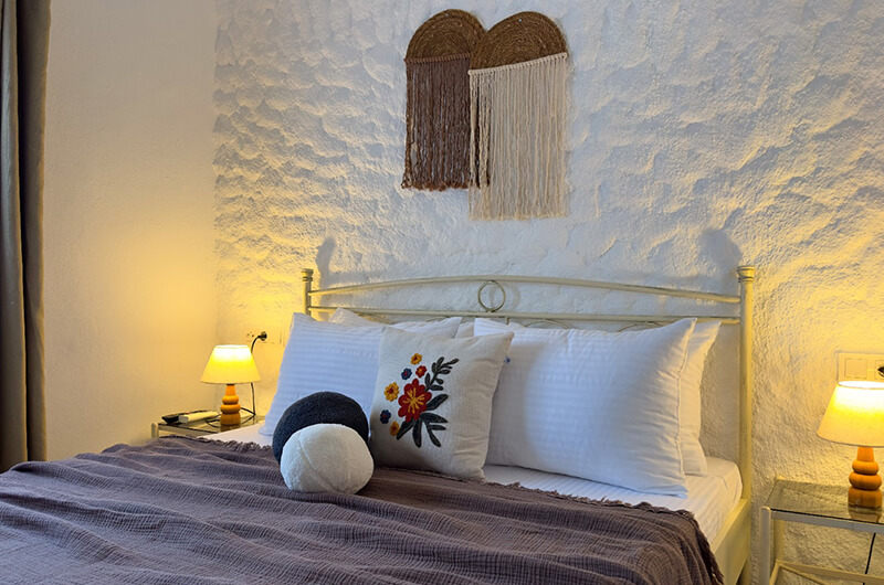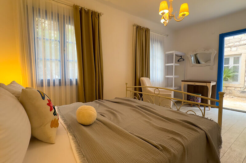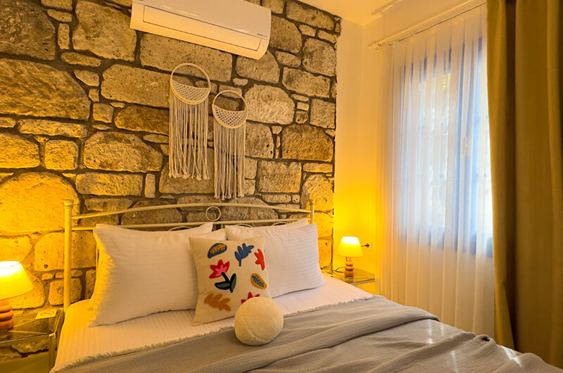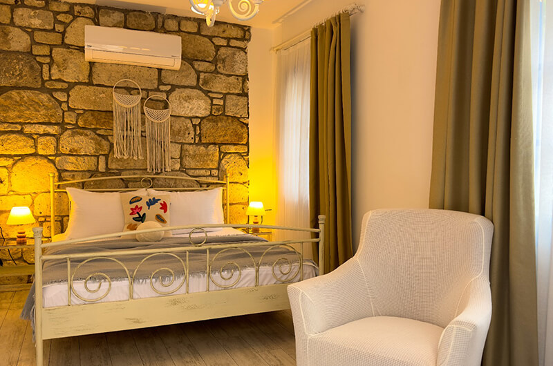"2 kişilik odalarımız, Alaçatı'nın taş evlerinin romantik atmosferini modern konforla buluşturuyor. Her anınız özel ve unutulmaz olsun diye tasarlandı."