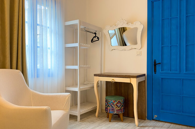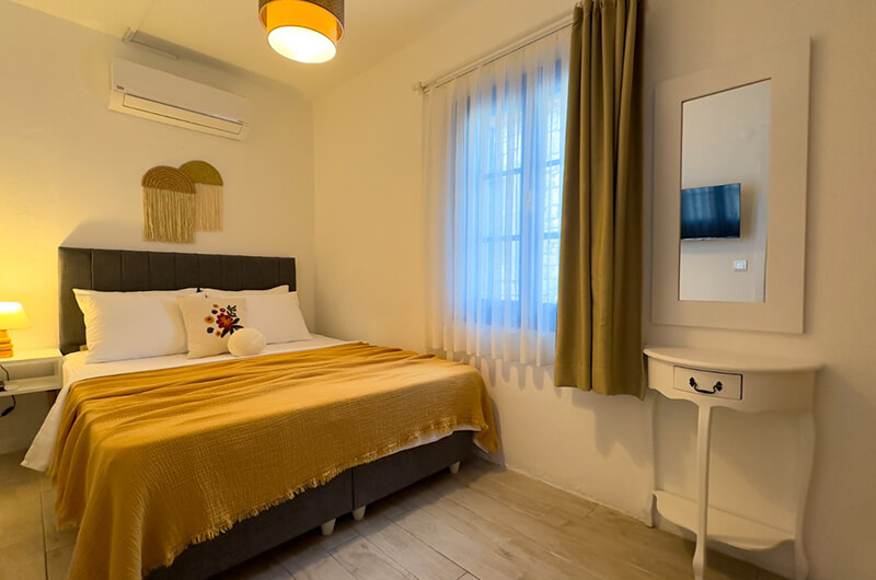 Alaçatı'nın eşsiz atmosferini yansıtan odalarımızda, konfor ve estetik bir arada sunulmaktadır. Geniş pencerelerden süzülen doğal ışık, pastel tonlardaki duvarlar ve özenle seçilmiş mobilyalar ile huzurlu bir ortam yaratılmıştır. Her detay, sizin rahatınız düşünülerek tasarlanmıştır.